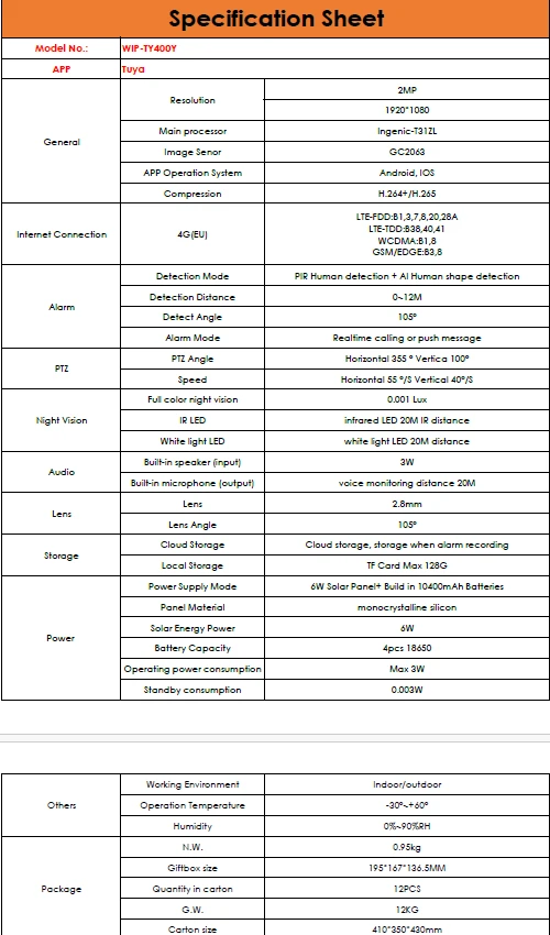 CAMWON WIP-TY400Y Ηλιακή 4G Wireless PTZ κάμερα 2Mpixels Με κάρτα SIM Λευκή
